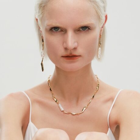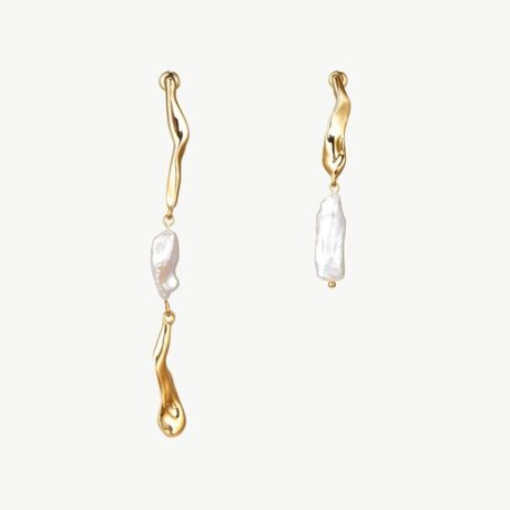Gold Asymmetrical Molten Baroque Pearl Earrings